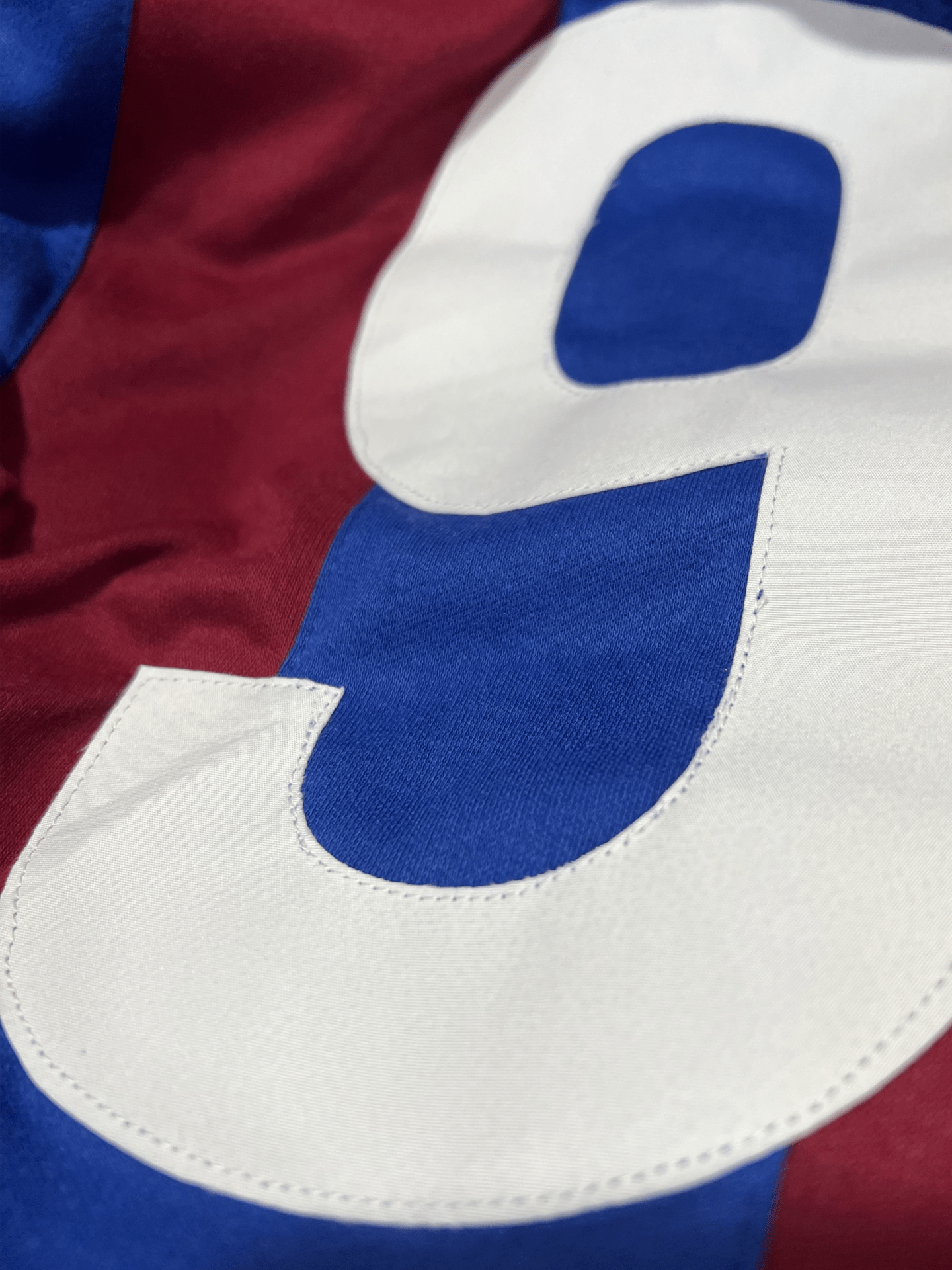 Escudo bordado. Número cosido en tela.